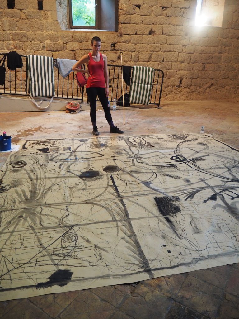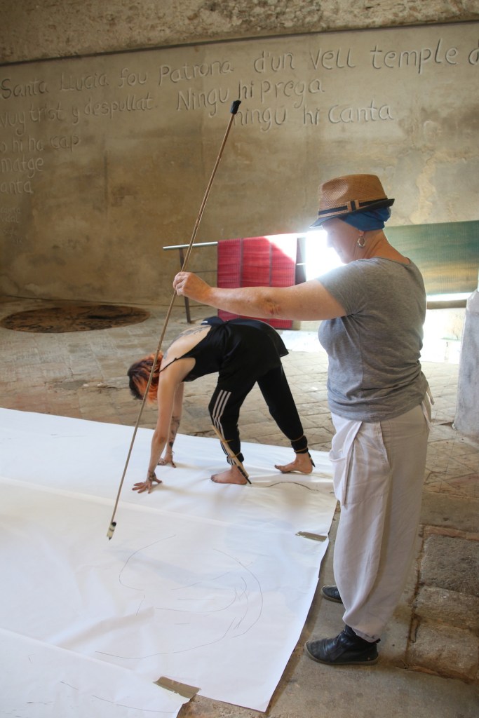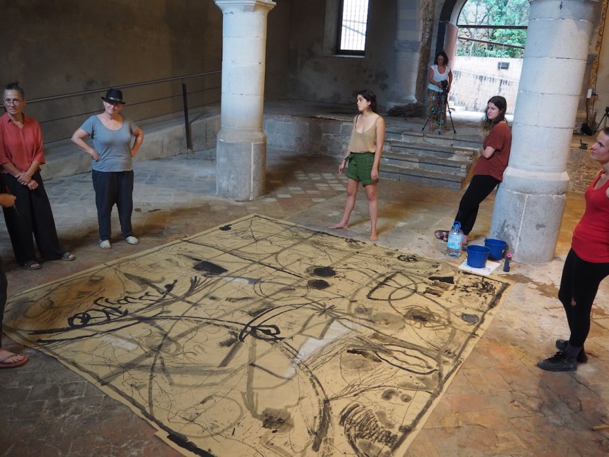 These drawings were made in 2018 at Santa Llucia, Bòlit Contemporary Art Centre (Girona) during an artists residency to coincide with the exhibition Mapes Efímers at Bòlit Contempaory Art Centre in Girona. Lesley Yendell led a workshop in which the group made two large drawings together using custom built tools and brushes.